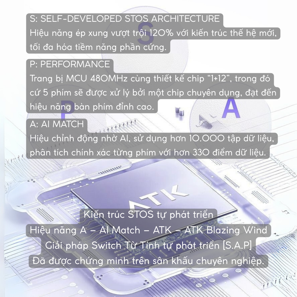 Bàn phím Hall Effect ATK 68 RX là lựa chọn lý tưởng cho game thủ muốn trải nghiệm nhanh, nhạy và sang trọng. Được thiết kế để đáp ứng cả nhu cầu chơi game chuyên nghiệp lẫn sử dụng hàng ngày, nó nổi bật với những tính năng sau: