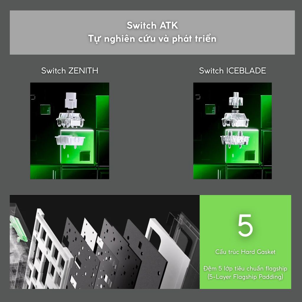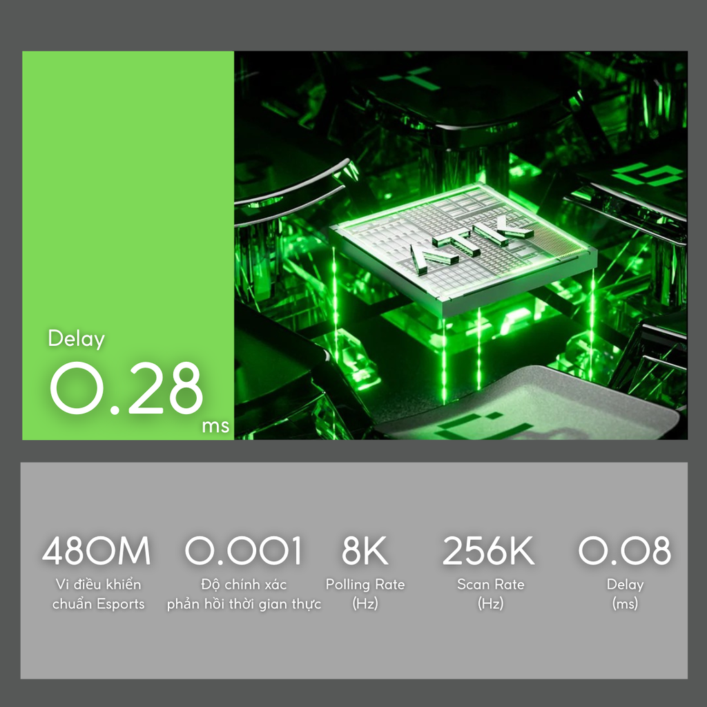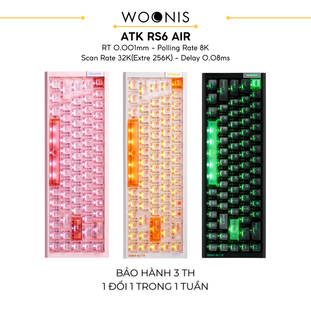 ATK RS6 AIR là bàn phím phím từ (magnetic switch) chuyên nghiệp dành cho game thủ, trang bị công nghệ Hall Effect độ chính xác 0.001mm và tuổi thọ 100 triệu lần nhấn. Với polling rate 8K Hz và độ trễ chỉ 0.08ms, trải nghiệm chơi game đỉnh cao. Đặc biệt, khả năng tùy chỉnh hành trình phím linh hoạt (0.001-3.3mm) và RGB 16.8 triệu màu, Music Rhythm 2.0, Godlight Sync giúp cá nhân hóa trải nghiệm. Bàn phím hoàn hảo cho các tựa game FPS, MOBA cần tốc độ và độ chính xác tuyệt đối!