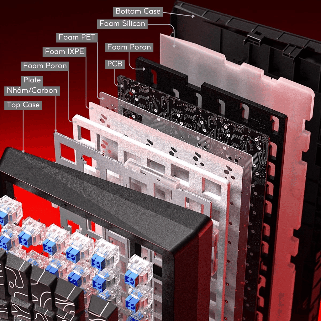 5 lớp vật liệu giảm chấn: Tăng độ ổn định, giảm tạp âm, mang lại trải nghiệm gõ thoải mái, âm thanh HIFI.