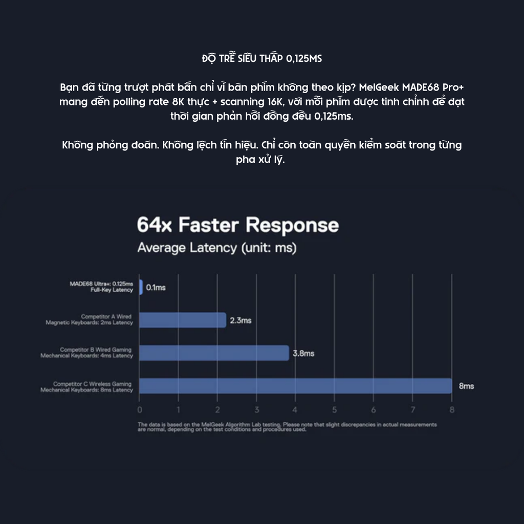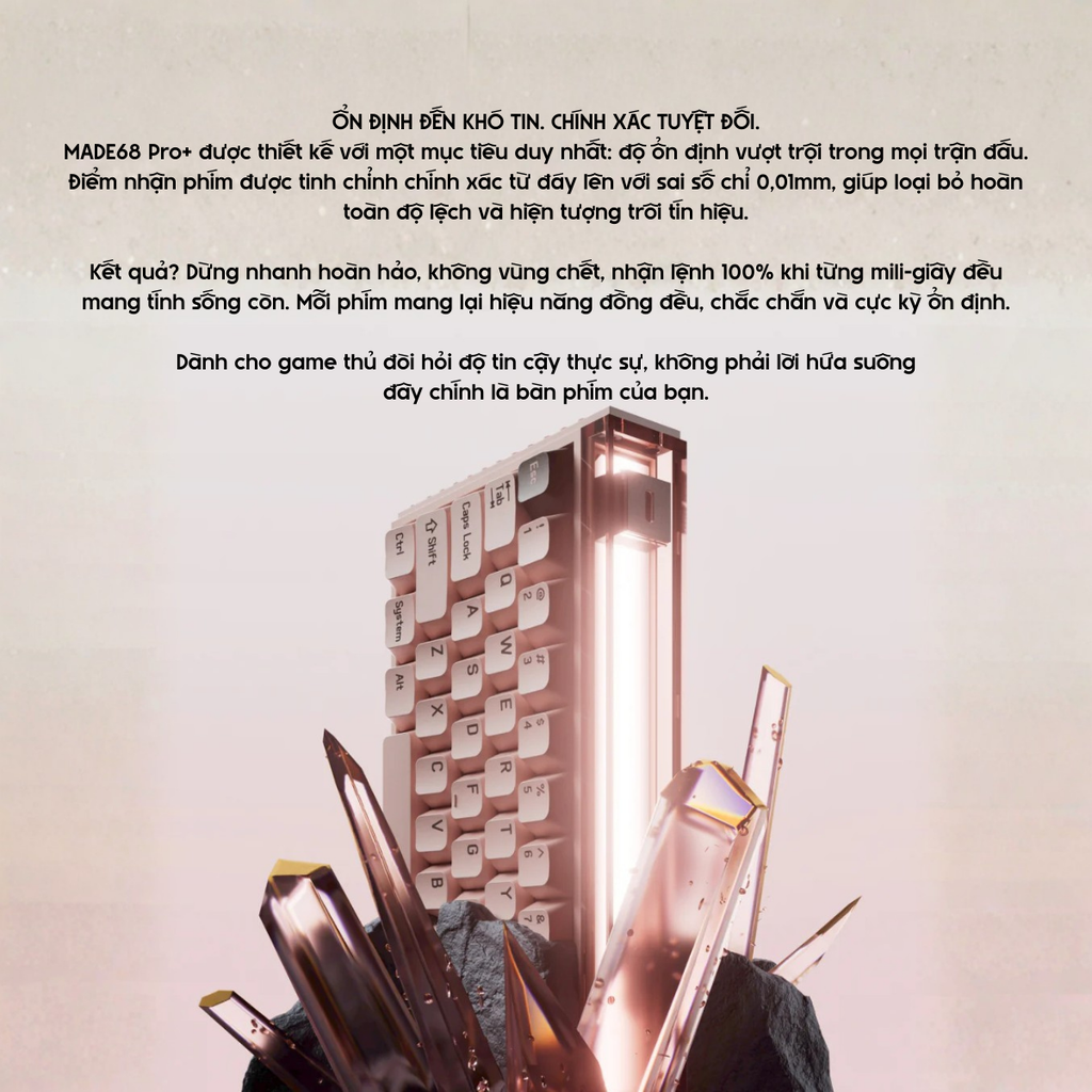 Polling rate 8K thực + scanning 16K, đảm bảo mọi phím đều phản hồi đồng đều, chính xác từng mili-giây.