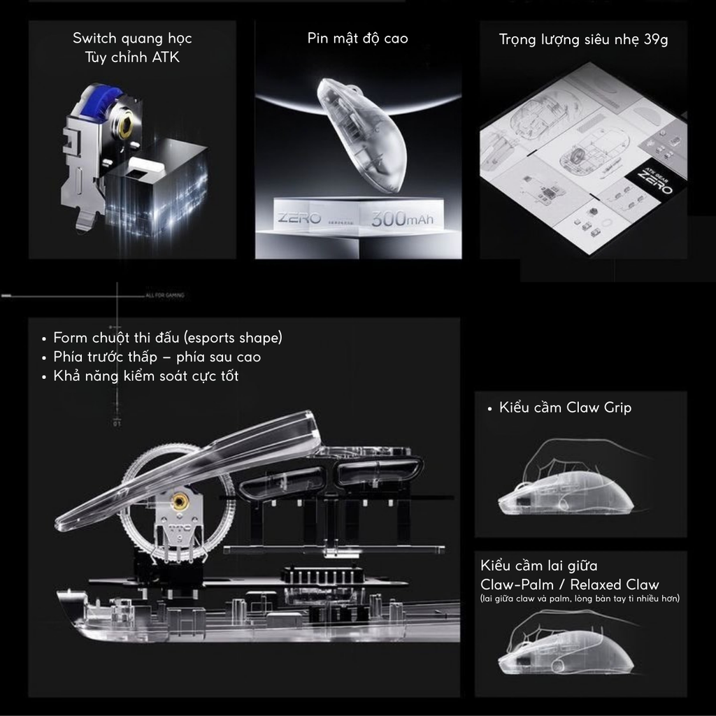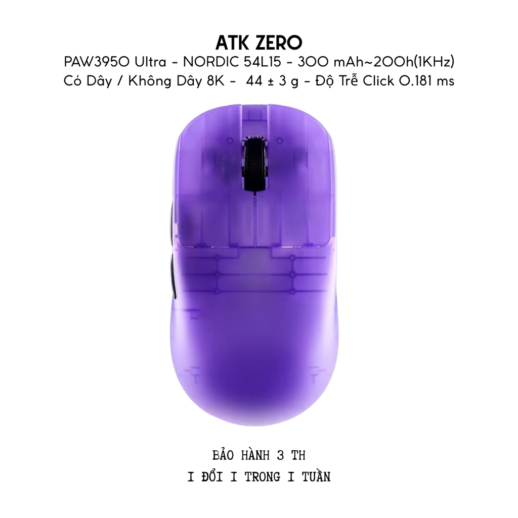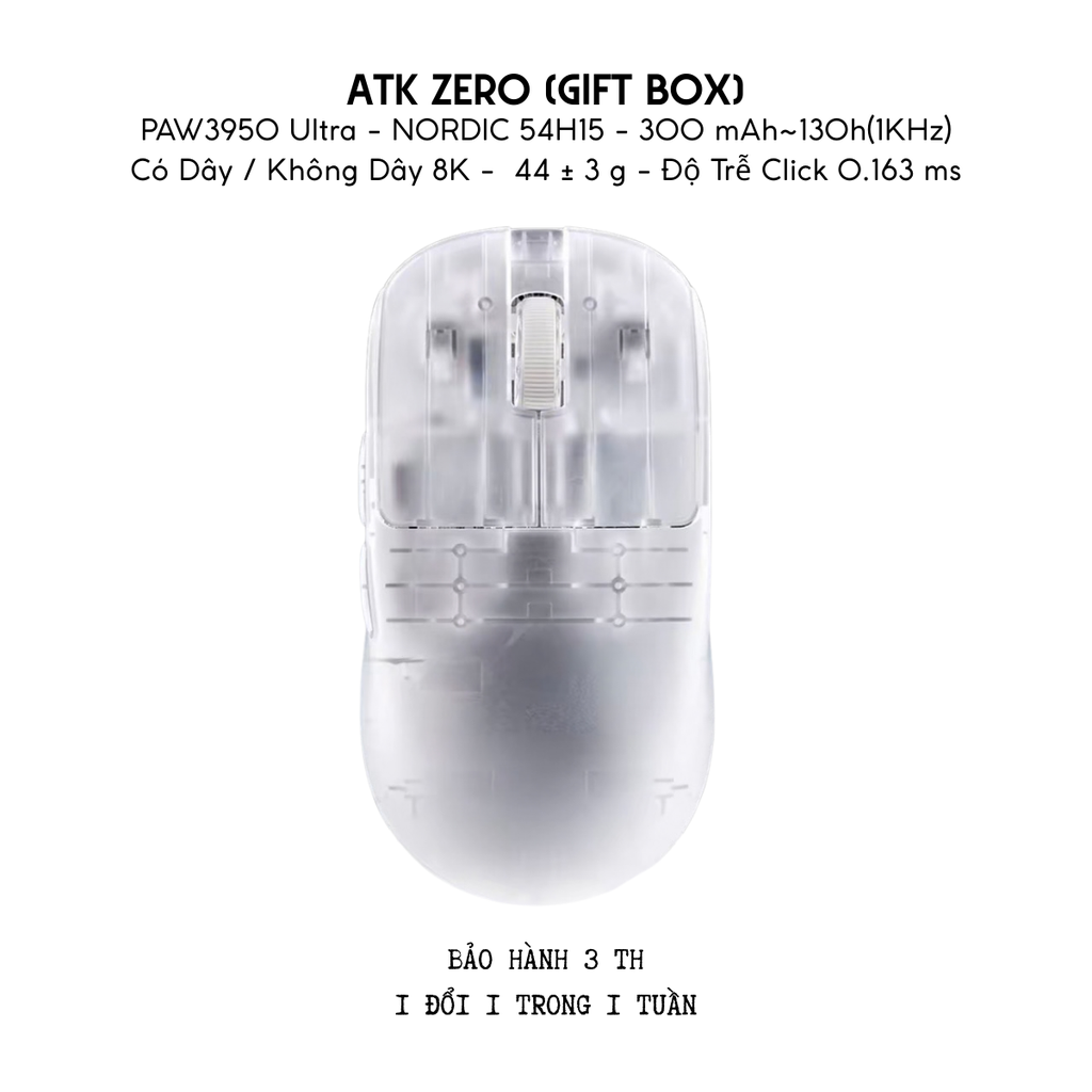 Chuột Gaming ATK ZERO – Siêu nhẹ 39g, PAW3950 Ultra, Polling Rate 8K