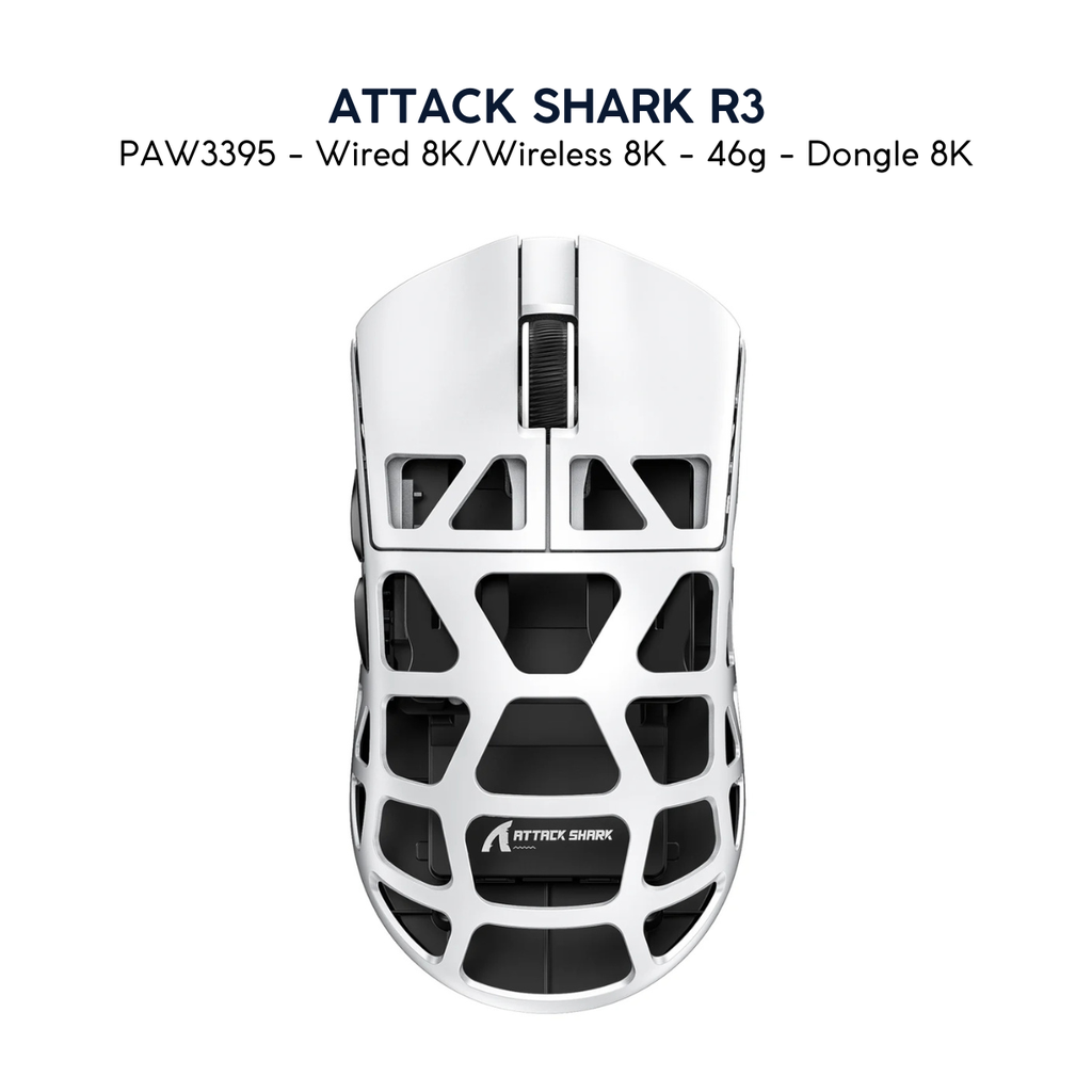 Trang bị cảm biến PixArt PAW3395 mới nhất, R3 mang lại độ chính xác cao cho các tựa game có nhịp độ nhanh, với tốc độ 650 IPS, gia tốc 50g và DPI lên tới 26.000. Feet PTFE nguyên chất không pha tạp giúp di chuyển chuột mượt mà và kiểm soát dừng chuột tốt hơn.
