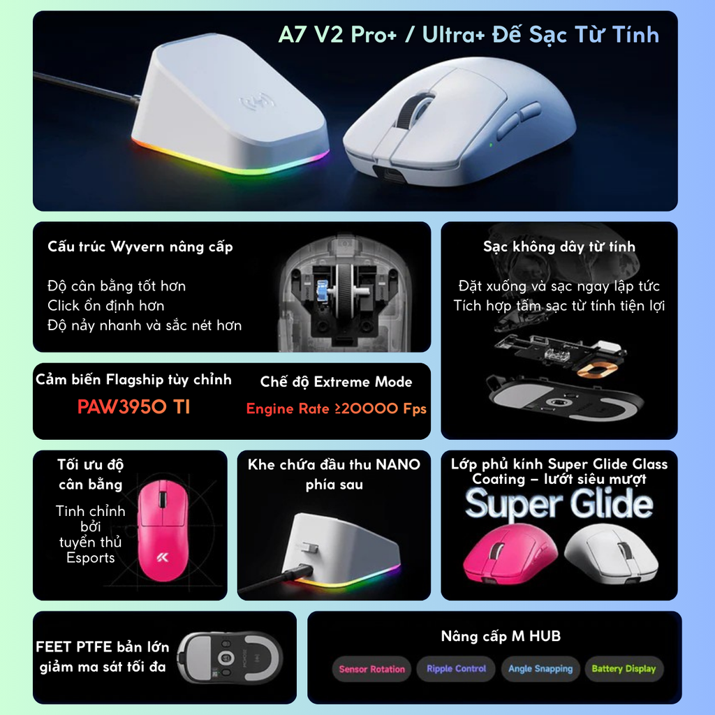 A7 V2 Series gồm nhiều phiên bản: A7 V2 | A7 V2 Pro | A7 V2 Ultra | A7 V2 Pro+ | A7 V2 Ultra+, phù hợp từ game thủ casual đến tuyển thủ chuyên nghiệp.