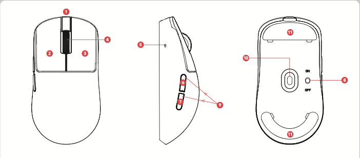 - (11) Feet chuột: Giúp chuột di chuyển mượt mà trên bề mặt pad chuột.