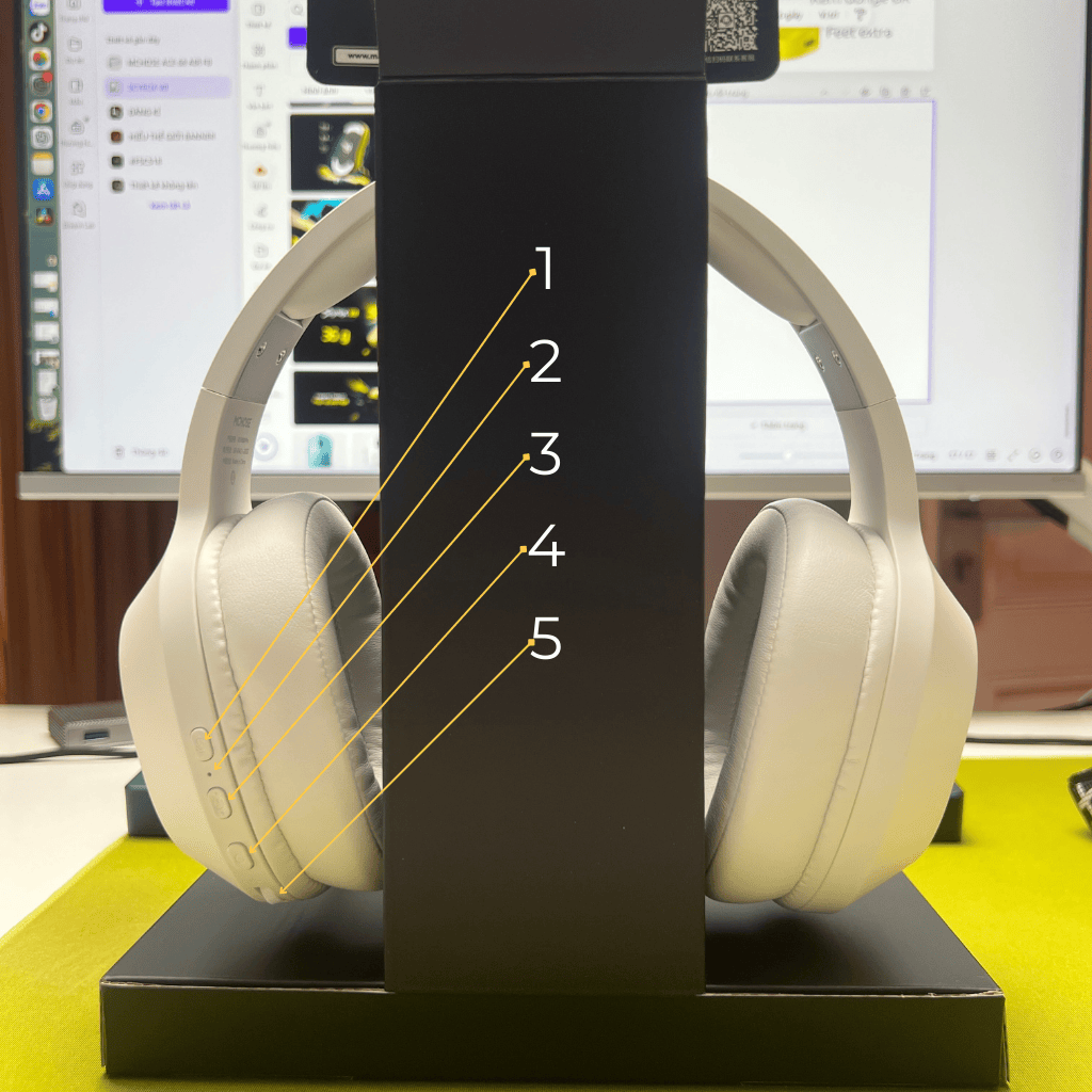 - Khi tai nghe được bật, cắm dây vào tai nghe và kết nối với máy tính, tai nghe sẽ tự động chuyển sang chế độ dây.
