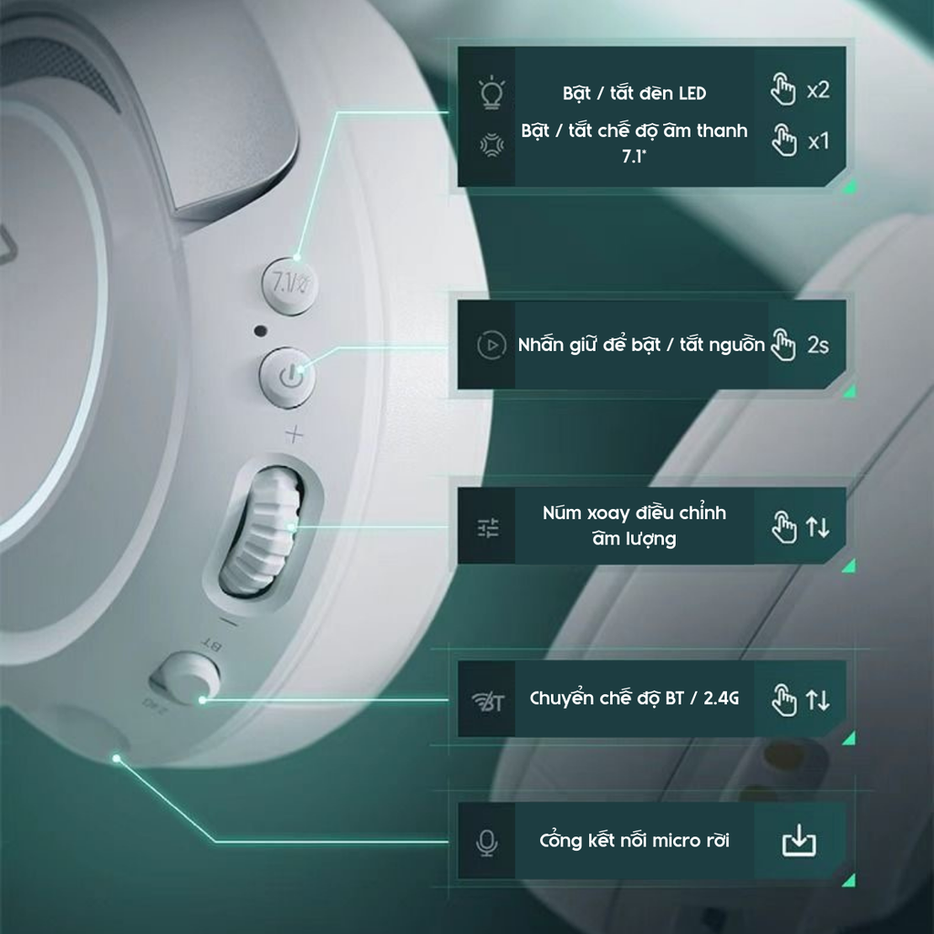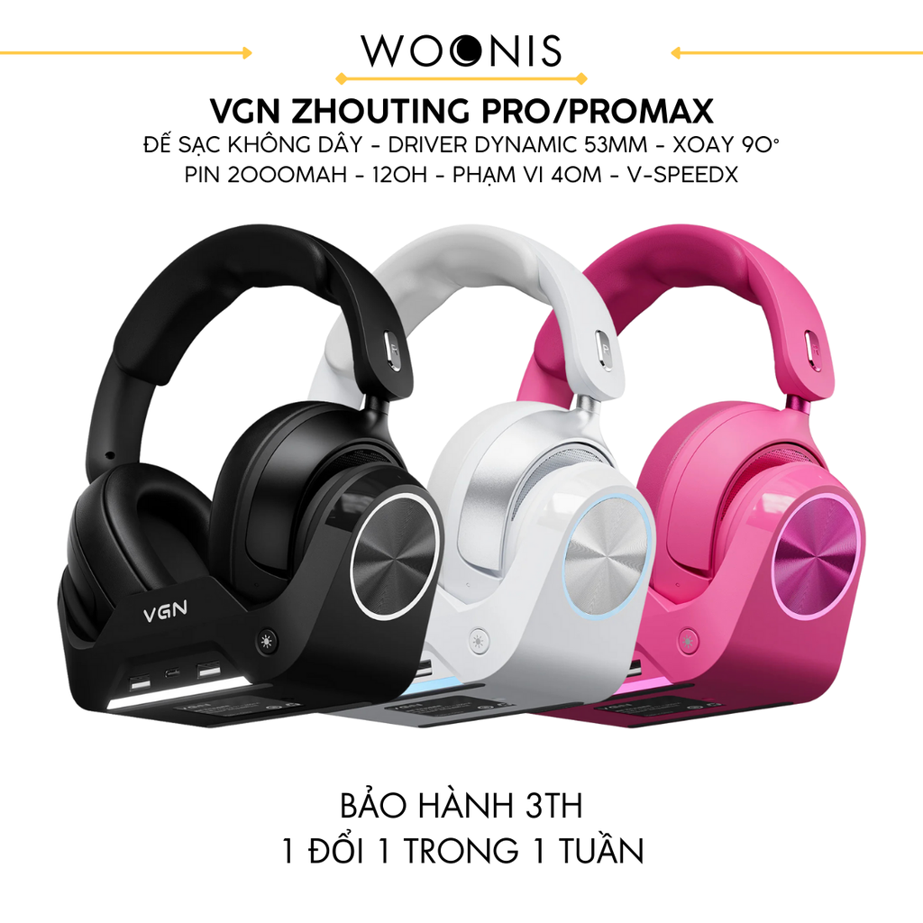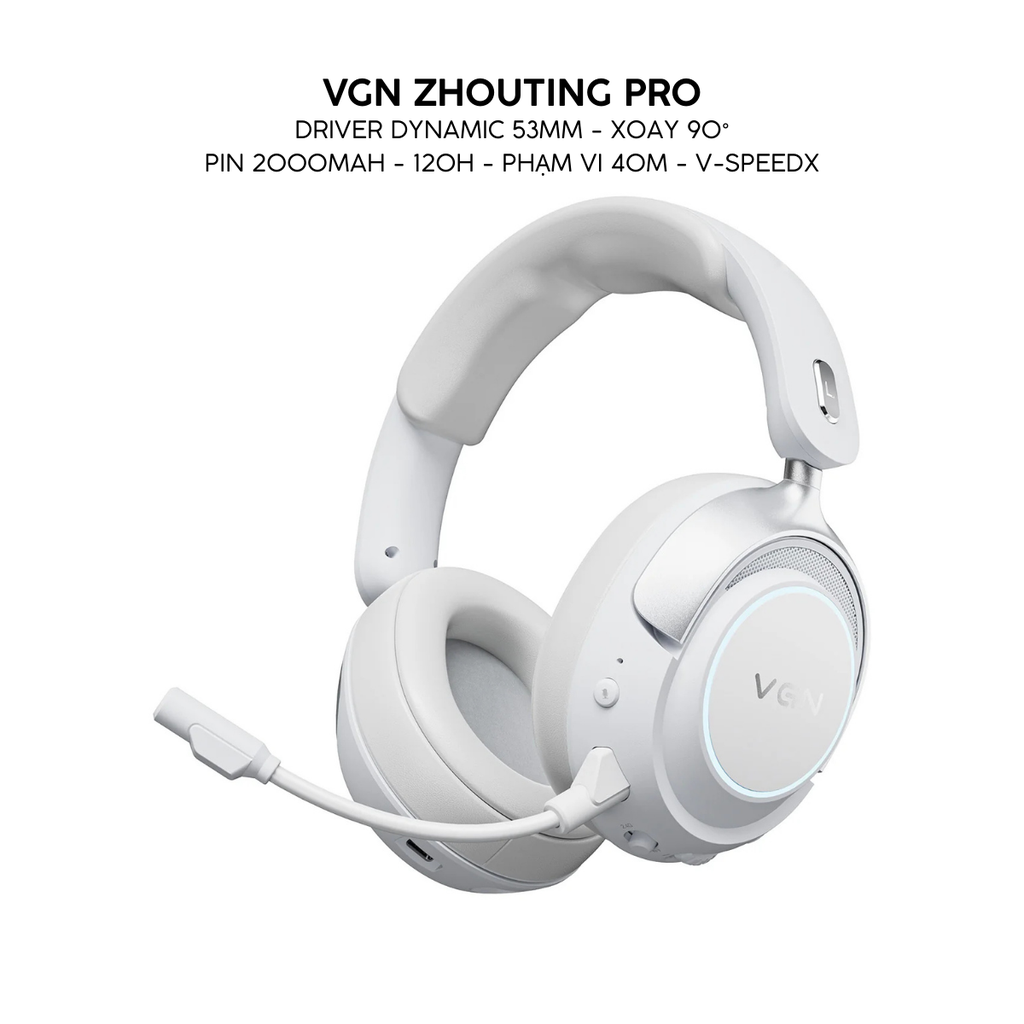 Tai nghe gaming VGN ZhouTing Pro/ProMax hỗ trợ 7.1, độ trễ thấp ~15ms, micro kép ENC, pin 120h, kết nối 2.4G, Bluetooth, Type-C.