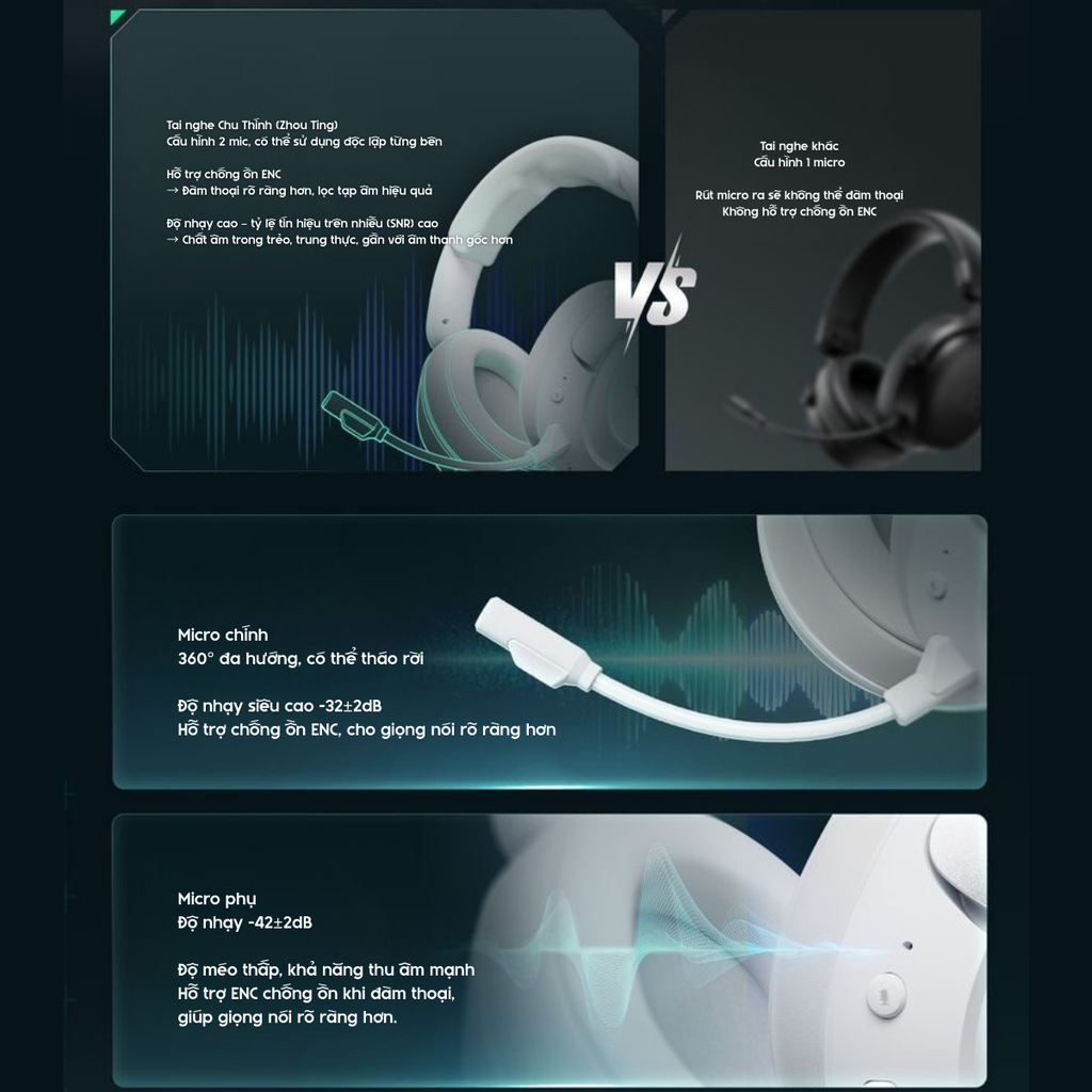 ZhouTing Pro: Tai nghe không dây đa kết nối, đầy đủ tính năng gaming cao cấp