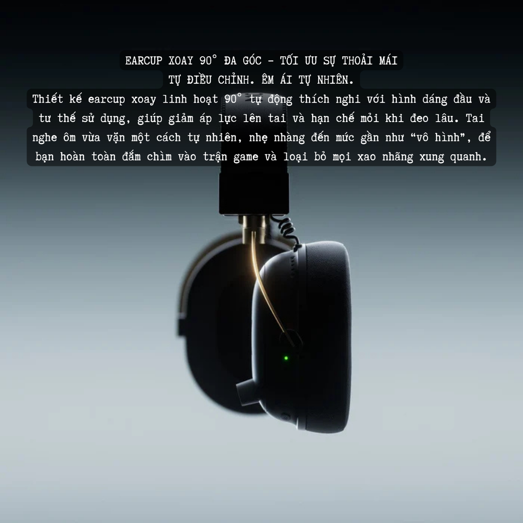 Thiết kế earcup xoay 90° đa hướng giúp tai nghe tự điều chỉnh theo dáng đầu và tư thế nghỉ.