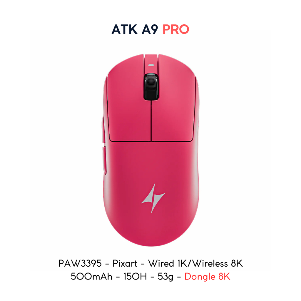 ATK A9 series là dòng chuột không dây nhẹ hàng đầu, được thiết kế dành riêng cho game thủ chuyên nghiệp và người dùng yêu cầu hiệu suất cao. Với trọng lượng chỉ 53g, cảm biến PAW3950 Ultra chính xác, và hỗ trợ Polling Rate lên đến 8000Hz, ATK A9 series mang lại trải nghiệm chơi game mượt mà, độ trễ cực thấp, và phản hồi siêu nhanh.
